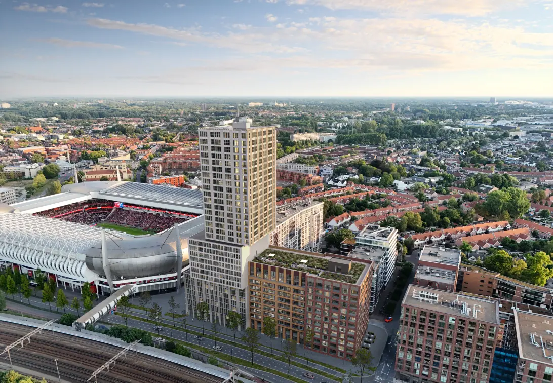 Located right next to the iconic Philips Stadium, Eurostaete combines urban dynamism with modern living comfort. The project consists of a striking residential tower and stylish low-rise buildings, designed with an eye for detail, light and living space.