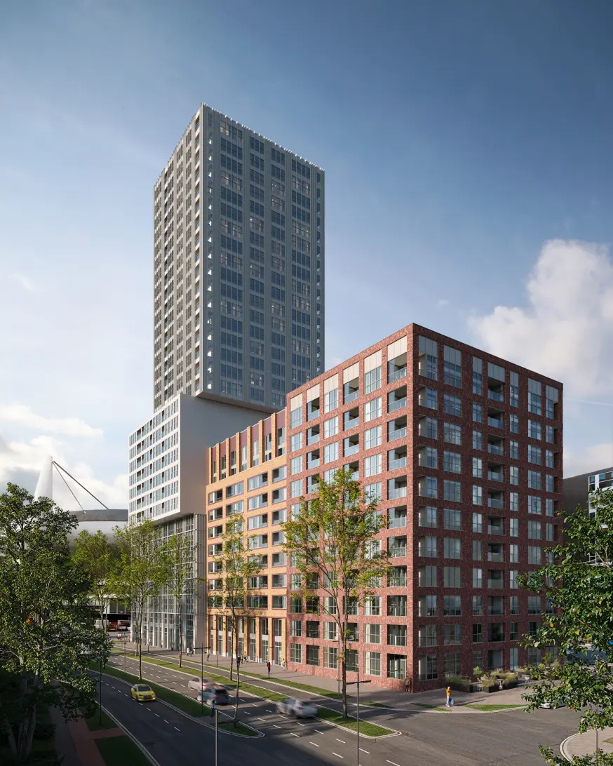 Gelegen direct naast het iconische Philips Stadion, combineert Eurostaete stedelijke dynamiek met modern wooncomfort. Het project bestaat uit een markante woontoren en een stijlvolle laagbouw, ontworpen met oog voor detail, lichtinval en leefruimte.