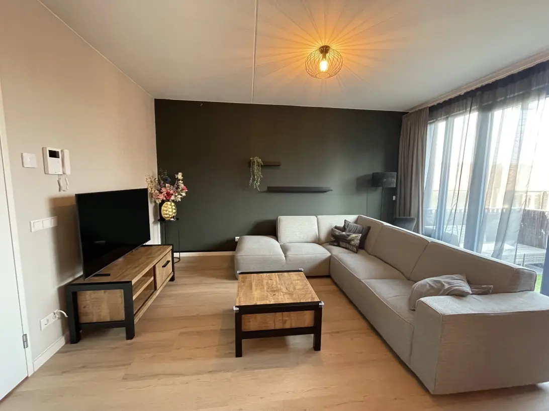 - Woonkamer met open keuken voorzien van diverse inbouwapparatuur waaronder koelkast, inductiekookplaat, combimagnetron, vaatwasser en recirculatieafzuigkap;