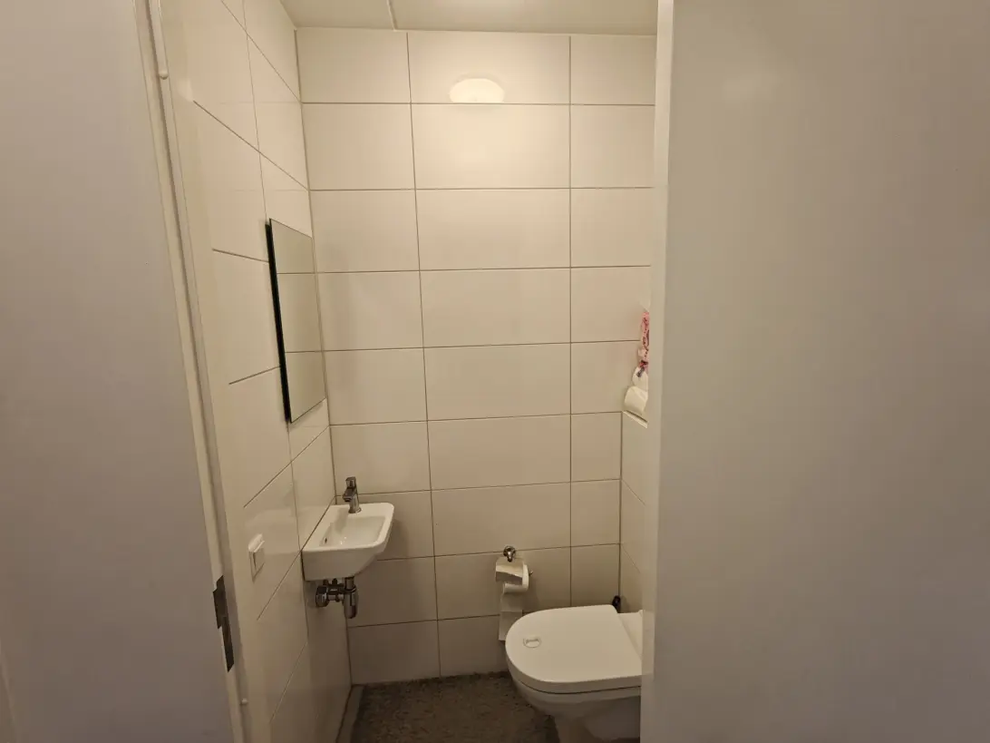 - (Deels) betegelde toiletruimte voorzien van hangend toilet en fonteintje;